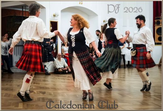 Highland Games Benešov nad Černou - 7. června 2025 Druhé letošní horalské hry, tentokrát vč. našich ukázek a výuky skotských tanců. Keltský kruh Budyně - 12. července 2025 Po pár letech se opět vracíme na podium Keltského kruhu s ukázkami i výukou skotských tanců. Horalské Hry - 26. července 2025, Rokytnice v Orlických Horách A do třetice, hry pořádané Clanem Orlických horalů, tam se také vydáme jako již mnohokrát. 25. Skotské hry - 22. a 23. srpna 2025, Sychrov V průběhu této největší skotské kulturní akce ve střední Evropě se jako každoročně představíme s novými tanečními ukázkami, povedeme výuku na taneční scéně a spolu s dalšími skupinami přispějeme k programu slavnostního zahájení již 25. ročníku Skotských her. A dvoudenní termín napovídá, že v pátek opět po letech proběhne ceilidh před zámkem. Pro podrobnosti a podmínky účasti sledujte stránky Skotských her. Chuchelské posvícení - 20. září 2025 Loni poprvé a letos si zopakujeme účast na skoro podzimní akci v pražské Chuchli. Seminář skotských country tanců - 4. až 5. října 2025, Praha Pokračujeme v tradičním podzimním semináři skotských country tanců, jehož náplň přizpůsobíme zkušenostem účastníků. Místo je již potvrzeno, znovu se bude tancovat v sále TJ Sokol Podolí. Zachována bude i sleva pro účastníky předchozích ročníků. Detaily jsou uvedeny zde. Svatoondřejské ceilidh - 28. listopadu 2025 od 19.00 hod., Praha Oslava svátku patrona Skotska, sv. Ondřeje, v podobě slavnostního ceilidh bezpochyby nesmí chybět v nabídce akcí na letošní rok. Místem konání bude opět krásný a prostorný sál Na Marjánce. K tanci zahraje Alastair Edwards se svou kapelou. Nenechte si ujít (taneční kapacita sálu je omezena). Podrobné infomace jsou uvedeny zde. Další, podrobnější informace budeme průběžně zveřejňovat a rozesílat e-mailem. Skotské tancování s Caledonian Clubem v roce 2024Se začátkem května konečně i sem přinášíme základní informace o akcích, na nichž si s námi, či pod naším vedením můžete v letošním roce zatancovat skotské tance. Do konce roku se můžete zúčastnit: Highland Games Úvaly - 18. května 2024, Úvaly Úvalské Highland Games již tradičně zahajují sezónu a neodmyslitelně k nim patří i naše ukázky a výuka skotských tanců. Highland Games Benešov nad Černou - 1. června 2024 Vzápětí navazují další Highland Games vč. našich ukázek a výuky skotských tanců. Horalské Hry - 27. července 2024, Rokytnice v Orlických Horách A do třetice, hry pořádané Clanem Orliclých horalů, tam se také vydáme jako již mnohokrát. 24. Skotské hry - 24. srpna 2024, Sychrov V průběhu této největší skotské kulturní akce ve střední Evropě se jako každoročně představíme s novými tanečními ukázkami, povedeme výuku na taneční scéně a spolu s dalšími skupinami přispějeme k programu slavnostního zahájení již 24. ročníku Skotských her. Seminář skotských country tanců - 5. až 6. října 2024, Praha Pokračujeme v tradičním podzimním seminářem skotských country tanců, jehož náplň přizpůsobíme zkušenostem účastníků. Místo je již potvrzeno, znovu se bude tancovat v sále TJ Sokol Podolí. Zachována bude i sleva pro účastníky předchozích ročníků. Detaily jsou uvedeny zde. Svatoondřejské ceilidh - 29. listopadu 2024 od 19.00 hod., Praha Oslava svátku patrona Skotska, sv. Ondřeje, v podobě slavnostního ceilidh bezpochyby nesmí chybět v nabídce akcí na letošní rok. Místem konání bude opět krásný a prostorný sál Na Marjánce. K tanci zahraje Alastair Edwards se svou kapelou. Nenechte si ujít (taneční kapacita sálu je omezena). Podrobné infomace jsou uvedeny zde. Další, podrobnější informace budeme průběžně zveřejňovat a rozesílat e-mailem. Přejeme vám roztančený nový rok 2024!![]() Skotské tancování s Caledonian Clubem v roce 2023Se začátkem jara přinášíme základní informace o akcích, na nichž si s námi, či pod naším vedením můžete v letošním roce zatancovat skotské tance. Do konce roku se můžete zúčastnit: Lughnasad - 29. července 2023, Nasavrky Již potřetí poprvé zúčastníme tohoto Mezinárodního festivalu keltské kultury v Zemi keltů, letos se dvěma výukovými bloky skotských tanců. 23. Skotské hry - 19. srpna 2023, Sychrov V průběhu této největší skotské kulturní akce ve střední Evropě se jako každoročně představíme s novými tanečními ukázkami, povedeme výuku na taneční scéně a spolu s dalšími skupinami přispějeme k programu slavnostního zahájení již 23. ročníku Skotských her. Seminář skotských country tanců - 7. až 8. října 2023, Praha Pokračujeme v tradičním podzimním seminářem skotských country tanců, jehož náplň přizpůsobíme zkušenostem účastníků. Místo je již potvrzeno, znovu se bude tancovat v sále TJ Sokol Podolí. Zachována bude i sleva pro účastníky předchozích ročníků. Detaily jsou uvedeny zde. Svatoondřejské ceilidh - 1. prosince 2023 od 19.00 hod., Praha Oslava svátku patrona Skotska, sv. Ondřeje, v podobě slavnostního ceilidh bezpochyby nesmí chybět v nabídce akcí na letošní rok. Místem konání bude opět krásný a prostorný sál Na Marjánce. K tanci zahraje Alastair Edwards se svou kapelou. Nenechte si ujít (taneční kapacita sálu je omezena). Podrobné infomace jsou uvedeny zde. Další, podrobnější informace budeme průběžně zveřejňovat a rozesílat e-mailem. Skotské tancování s Caledonian Clubem v roce 2022Konečně, s koncem léta, přinášíme základní informace o akcích, na nichž si s námi, či pod naším vedením můžete ještě v letošním roce zatancovat skotské tance. Do konce roku se můžete zúčastnit: Lughnasad - 30. července 2022, N